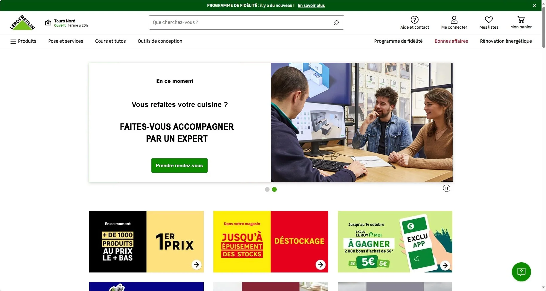Le design ci-dessous a été retenu, notamment pour sa capacité à évoluer et s’adapter aux différentes contraintes métiers. Une fois ce nouveau parcours lancé officiellement, des bandeaux ont été montrés sur le site Leroy Merlin pour informer les utilisateurs de cette nouvelle fonctionnalité.